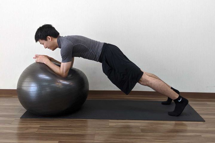 バランスボール・プランクは、体幹トレーニングの定番である「プランク」をバランスボールの上で行うトレーニングです。