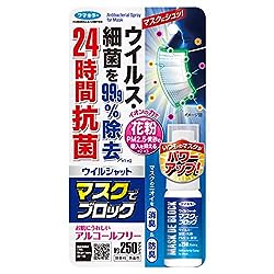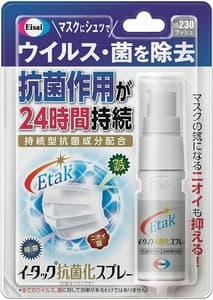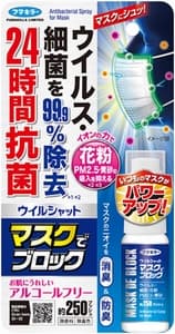 除菌ができ、布マスクや不織布マスクに3回拭きかけて湿った部分には効果があるとうたわれています。