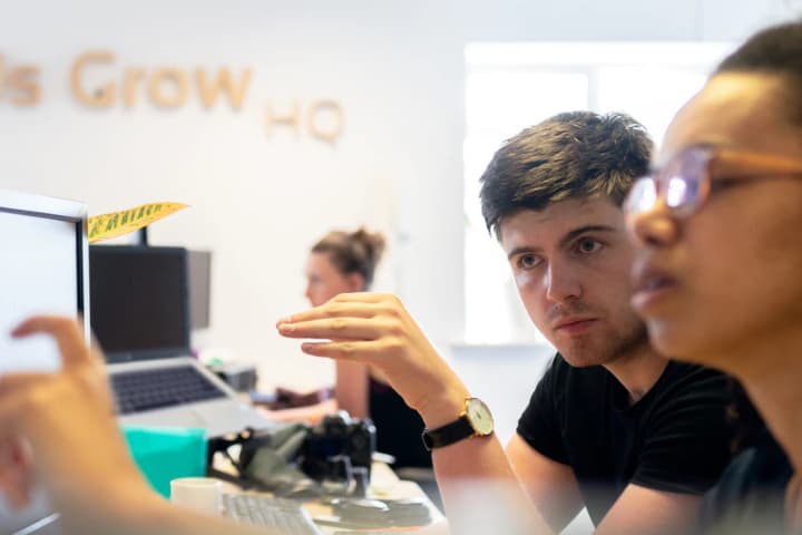 geek jobは、初心者でも90%以上の人が1ヶ月から3ヶ月程度でプログラミングのスキルを習得しています。その理由としては、すぐに質問ができる環境が整っていることです。