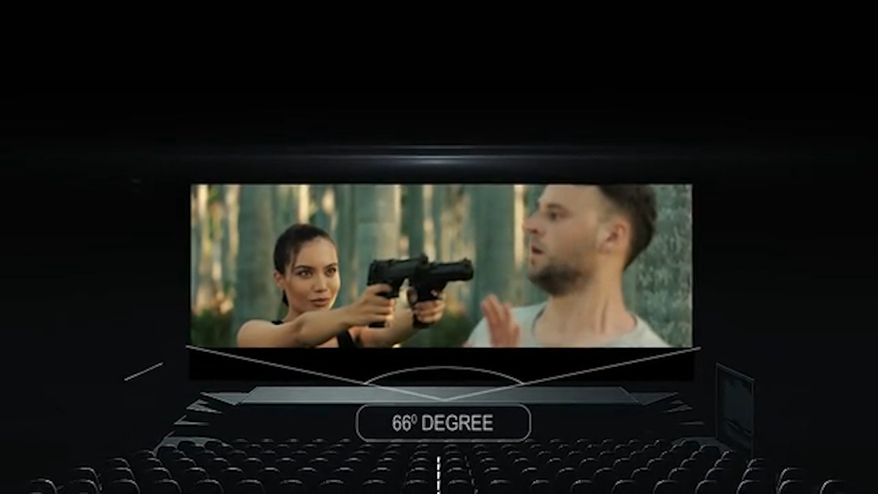 「Cinera Edge」は国内の映画館でも最大級となるスクリーン幅20メートルを超えるもの(1200インチ相当)と同等の映像を提供する。