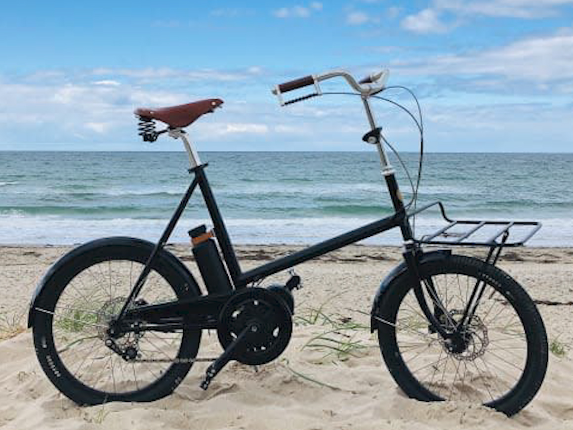 「THE B'FAIR E-BIKE」は3段階の速度調整ができ、最高で時速40kmで走行が可能。水筒のようなバッテリーがパワフルに走行をアシストしてくれる。