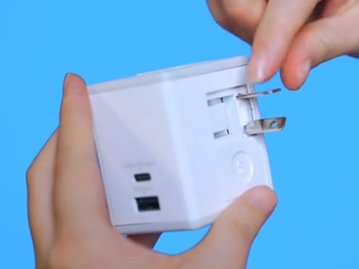 「Alien」はUK/US/AU/EU規格の電源プラグを搭載。おかげで、世界150ヶ国以上という幅広い充電ニーズに対応する。レバーを回して、折りたたまれたプラグを展開するだけ、という手軽さも嬉しいポイントだ。