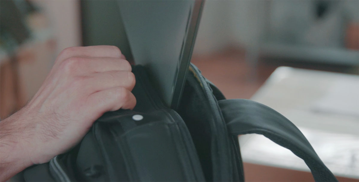 ノートPC用ポケットと防水加工のおかげで、電子機器も安心して持ち運べる。