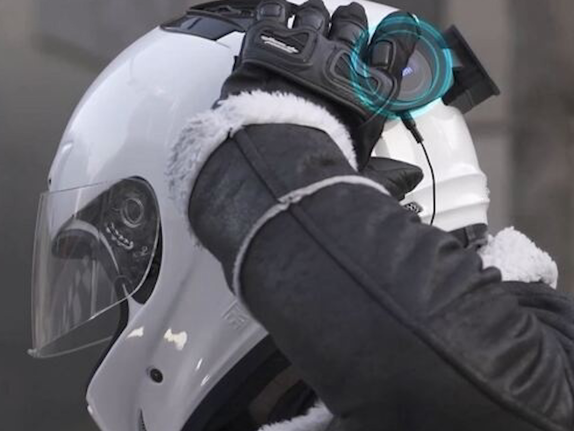 「HeadTooth」は骨伝導スピーカーで、耳をふさぐことなく、ヘルメット内全体に音を届ける。加えて、スマホと連携し、電話の応答などがワンタッチで行える優れもの。