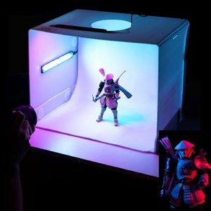 • 自宅で本格的な撮影が楽しめる撮影ボックス。高輝度LEDライトが、被写体を均一に照らしてくれます。正面だけではなく、上のアングルから撮影することも可能です。様々なシーンで活用できる撮影ボックスです。