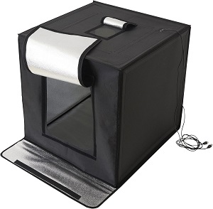 折りたたむとコンパクトになり、手軽に組み立てられるので、場所を問わず撮影することができます。LEDはUSB給電式なので、PCやモバイルバッテリーのUSBポートを利用できます。小物を手軽に撮影したいという人に最適です。