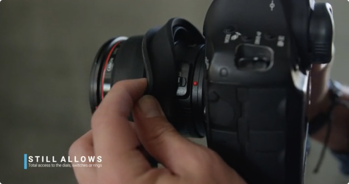 サイズは54mm〜76mmに対応した"Sサイズ"と72mm〜112mmに対応した"Mサイズ"の2種類を用意。柔らかい素材のため、撮影中のレンズ操作もストレスなく行える。さらにレンズカバーやフィルターなど、モノによってはレンズフードと干渉してしまうアイテムも気軽に使用できる点は大きなポイントとなりそうだ。