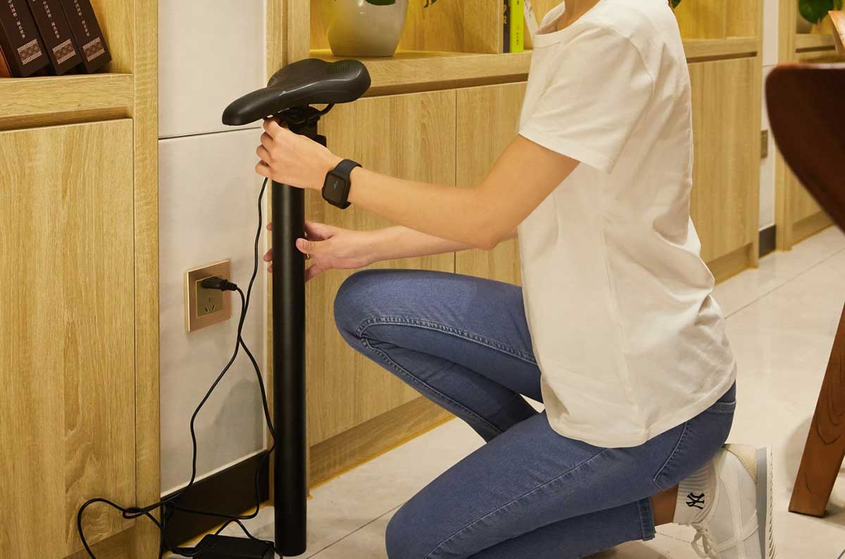 サドルの支柱(シートポスト)にバッテリーが組み込まれていて、3時間の充電で約50kmの距離を走れる。自転車ごとではなく、支柱だけ家に持ち込めばいいので充電も手軽。