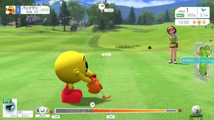 操作方法は特徴的な3種類から選択でき、天候や時間によってコースの状況が変化していく本格的なゴルフが誰でも手軽に体験可能。個性豊かなキャラクターとキャディがプレイを盛り上げます。