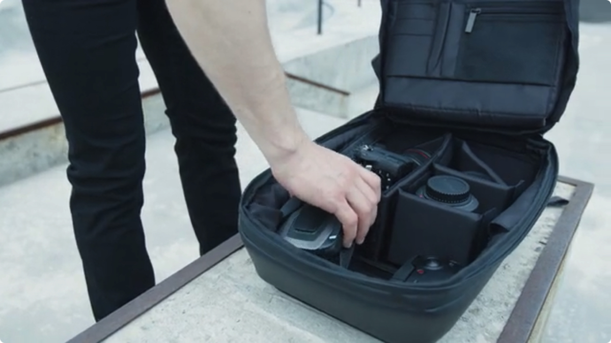 表面は炭素繊維を採用し、衝撃や摩擦に強い設計。防水性能もしっかりしているため、雨の日でも安心して使用できそう。さらに専用アクセサリーで中に仕切りを作ると、機材などをパーツ毎に収納できる。カメラマンなら仕事からプライベートまでバッグはこれ1つに任せられそうだ。