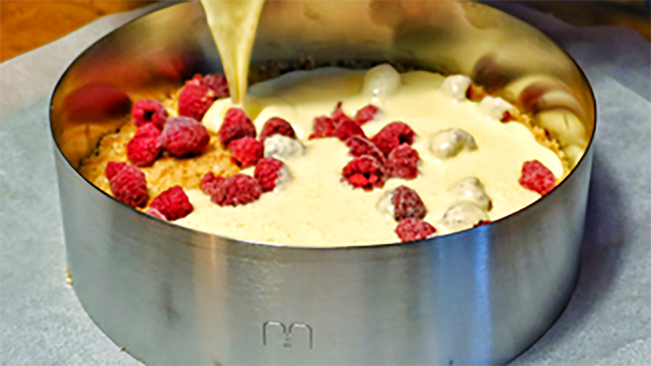 各層はそのまま料理をサーブする皿にもなり、外壁リングはオーブンで焼くケーキ型としても使える。