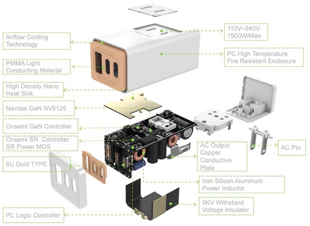 最大1500Wをサポートする内蔵コンセント付きで、電力を多く必要とする電子機器や電化製品にも電力を供給できる。
