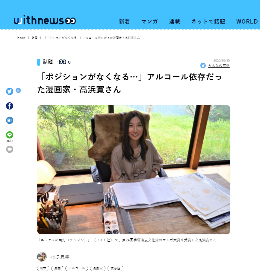 「ポジションがなくなる…」アルコール依存だった漫画家・高浜寛さん | withnews(ウィズニュース)