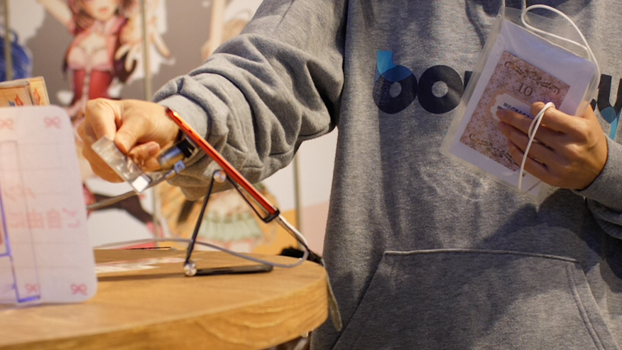 まず、来店した際に会員証のQRコードを備え付けのiPhoneに読み込ませて、ニックネームを登録。こうすることで、アイドルに名前を呼んでもらえるようになる。