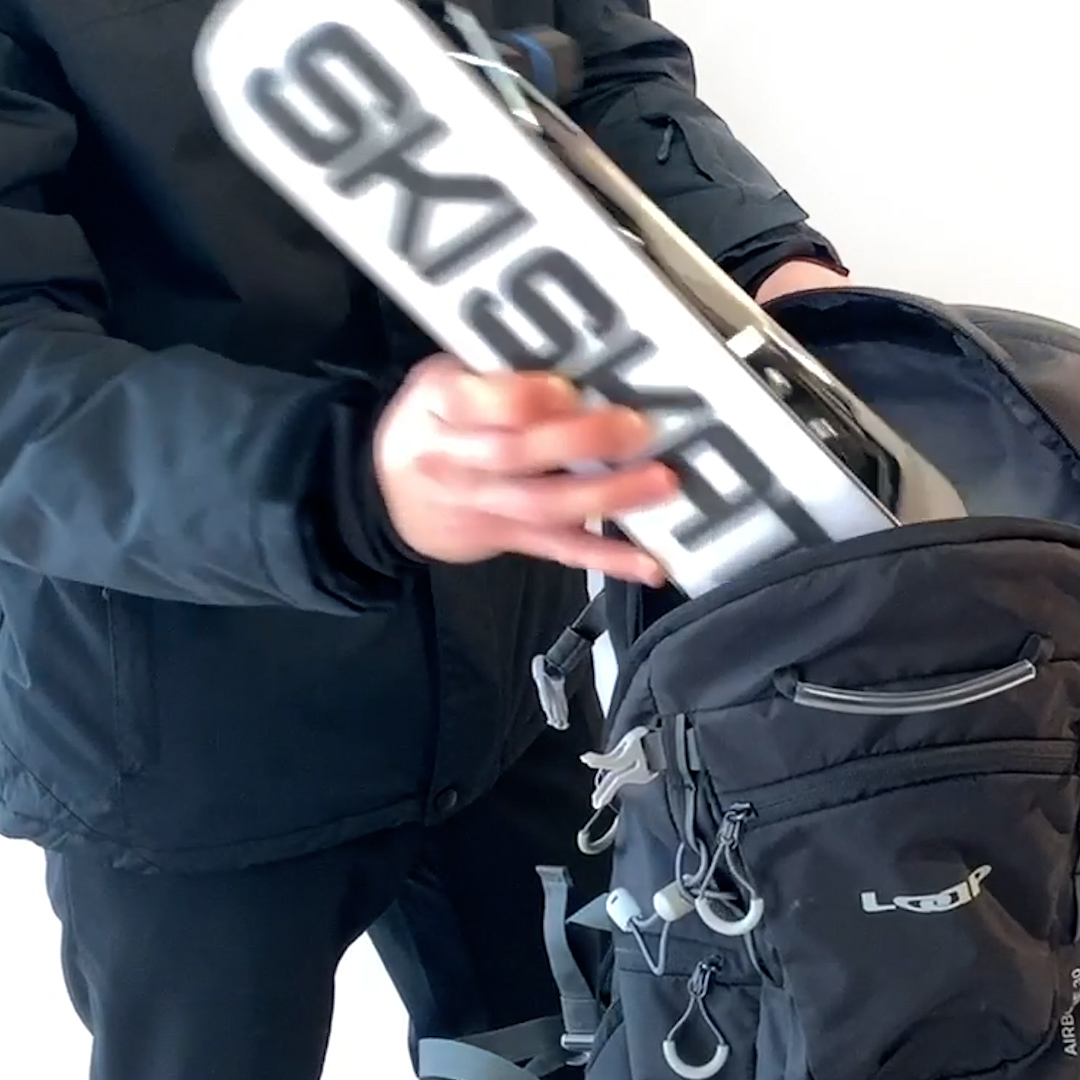 バックパックに入れて持ち運べるほどのコンパクトさ。スキーやスノーボードを楽しみながら、Skistatesに履き替えて気分を変えて楽しむことも可能だ。