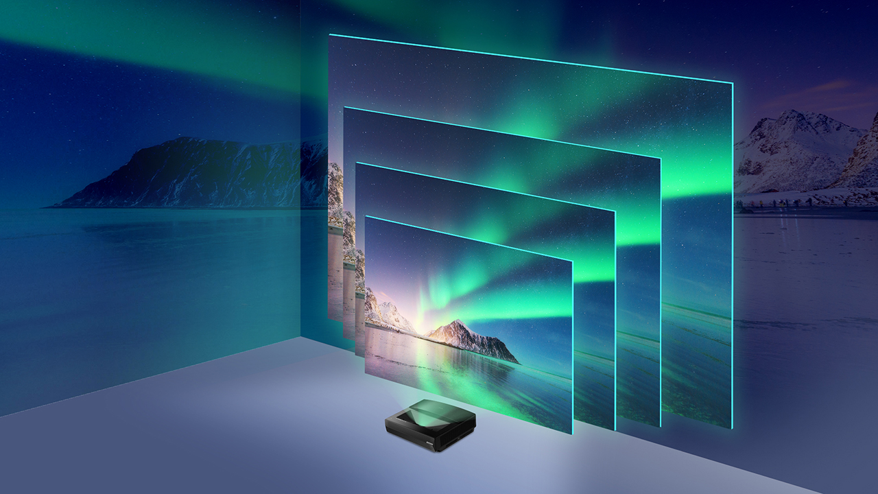 名前が示す通り、「Polaris 4K Laser TV」は壁にレーザーを照射して映像を投影するプロジェクター型のテレビ。しかし、従来のプロジェクターとはひと味もふた味も違う。