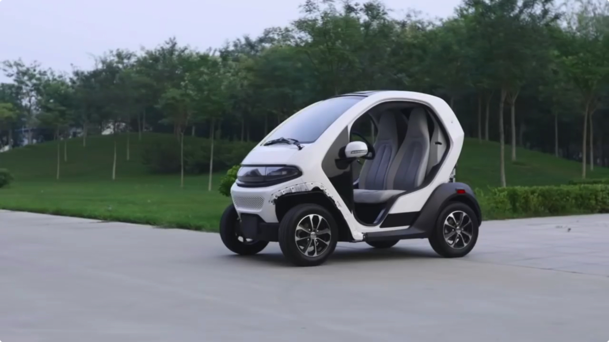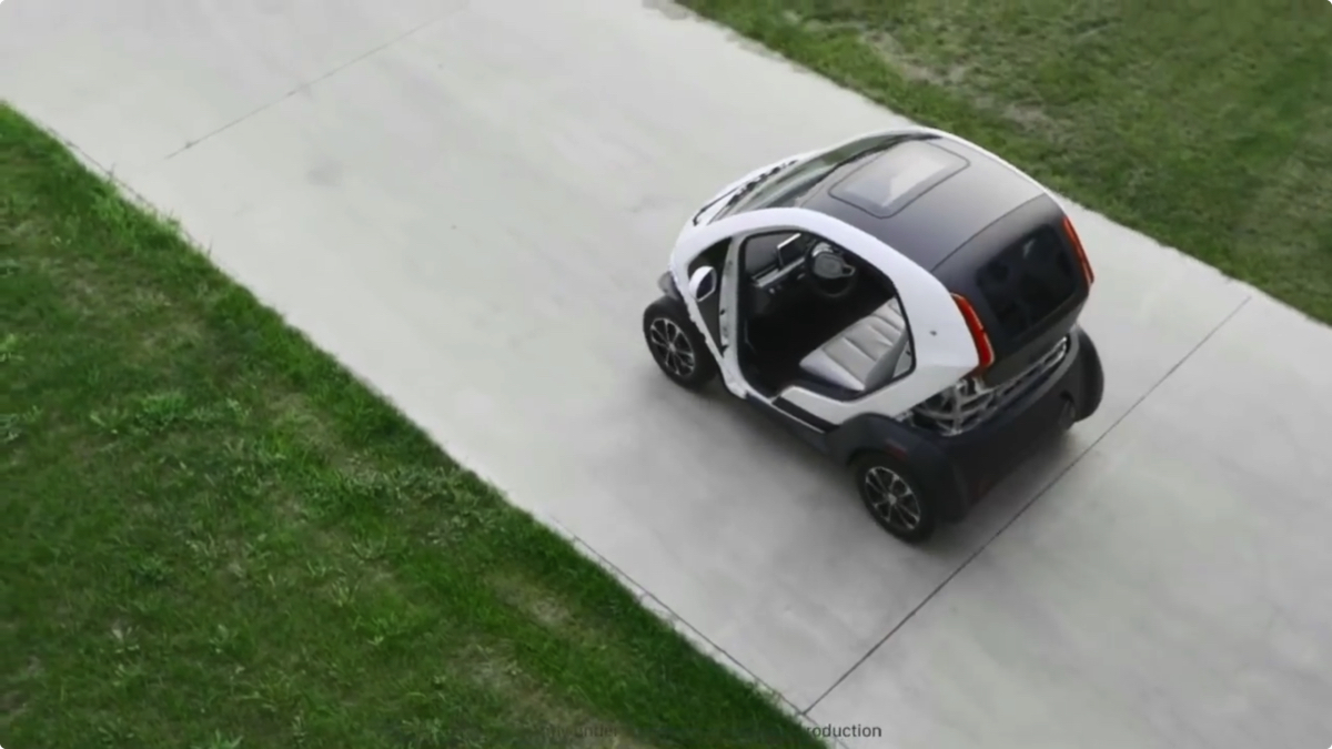 2人乗り用の小型車で近所をスクーター感覚で乗りこなせる新しい電気自動車だ。