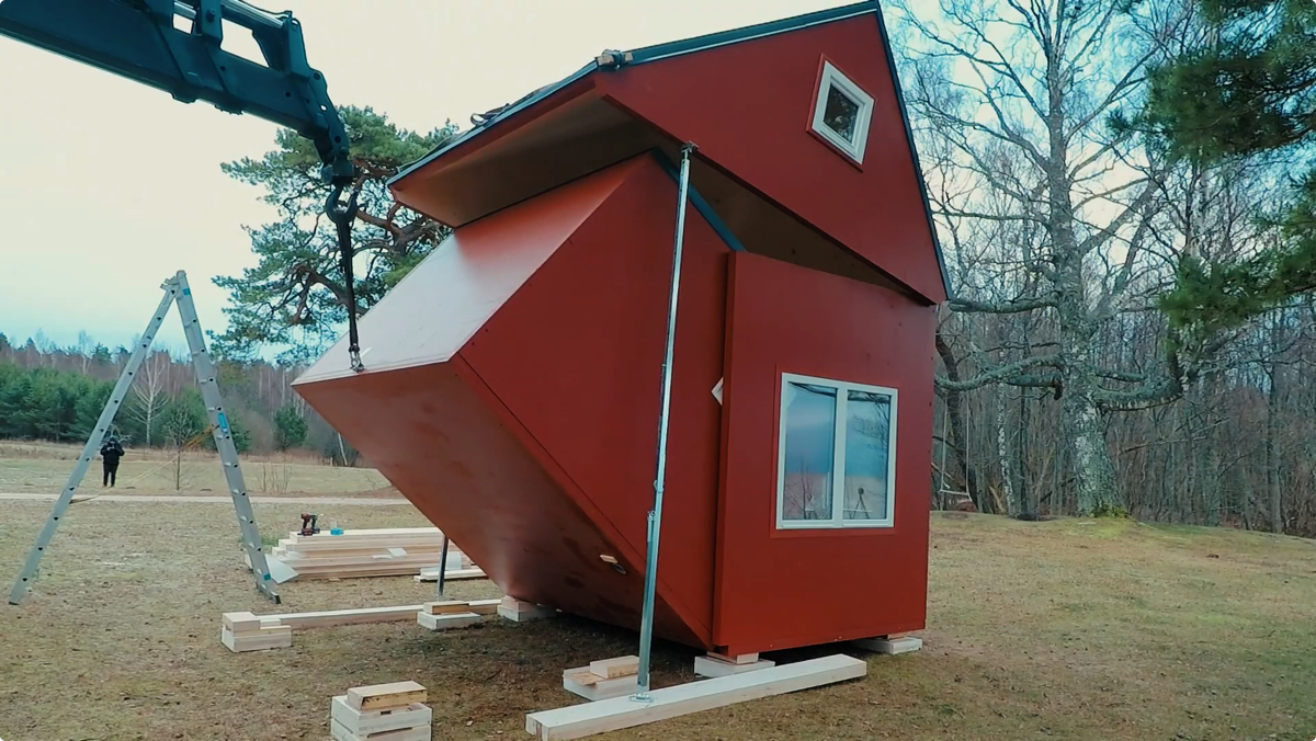 こんな基礎工事なしで家を建てても大丈夫か?と地震大国である日本に住む人なら誰しも考えるはず。この「Brette Haus」は気候が年中安定し、災害もほとんど起こらないラトビアだからこそ生まれたアイデアだ。