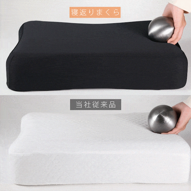 従来の枕よりも寝返りのときに筋肉を使わないため、約40%ラクに寝返りが打てるようになっている。