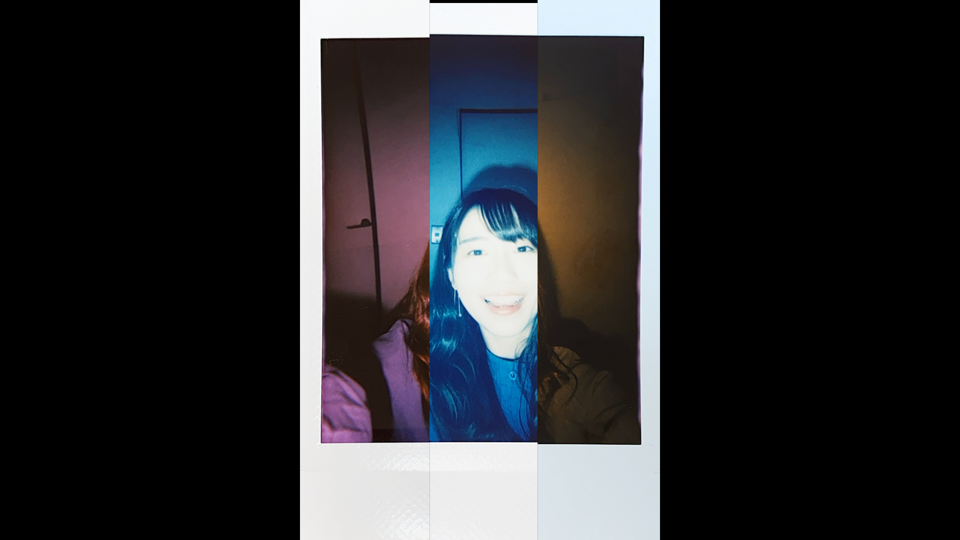 実際に撮影した写真も、一般的なチェキで撮るよりも、全体的に黒みがかったエモさを感じる1枚になりました。