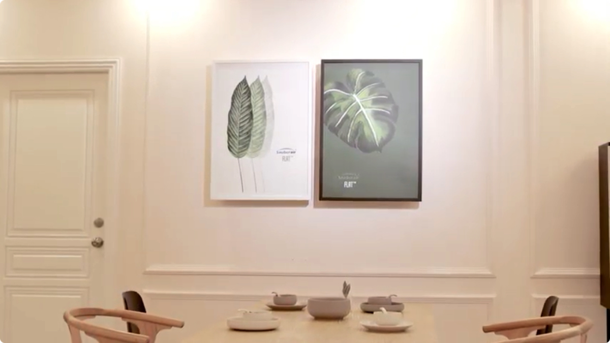 「Sauberair FLAT」の最大の特徴ともいえる、空気清浄機には珍しい壁に掛けて設置するデザイン。額縁の中に絵画を飾れば部屋のインテリアとしても使用可能だ。省スペースで空気清浄機を使えるという点でも大きなメリット。部屋にただ絵を飾るのではなく、空気清浄機として置けるため、アートに興味がなかった人も身近に感じるきっかけになりそうだ。