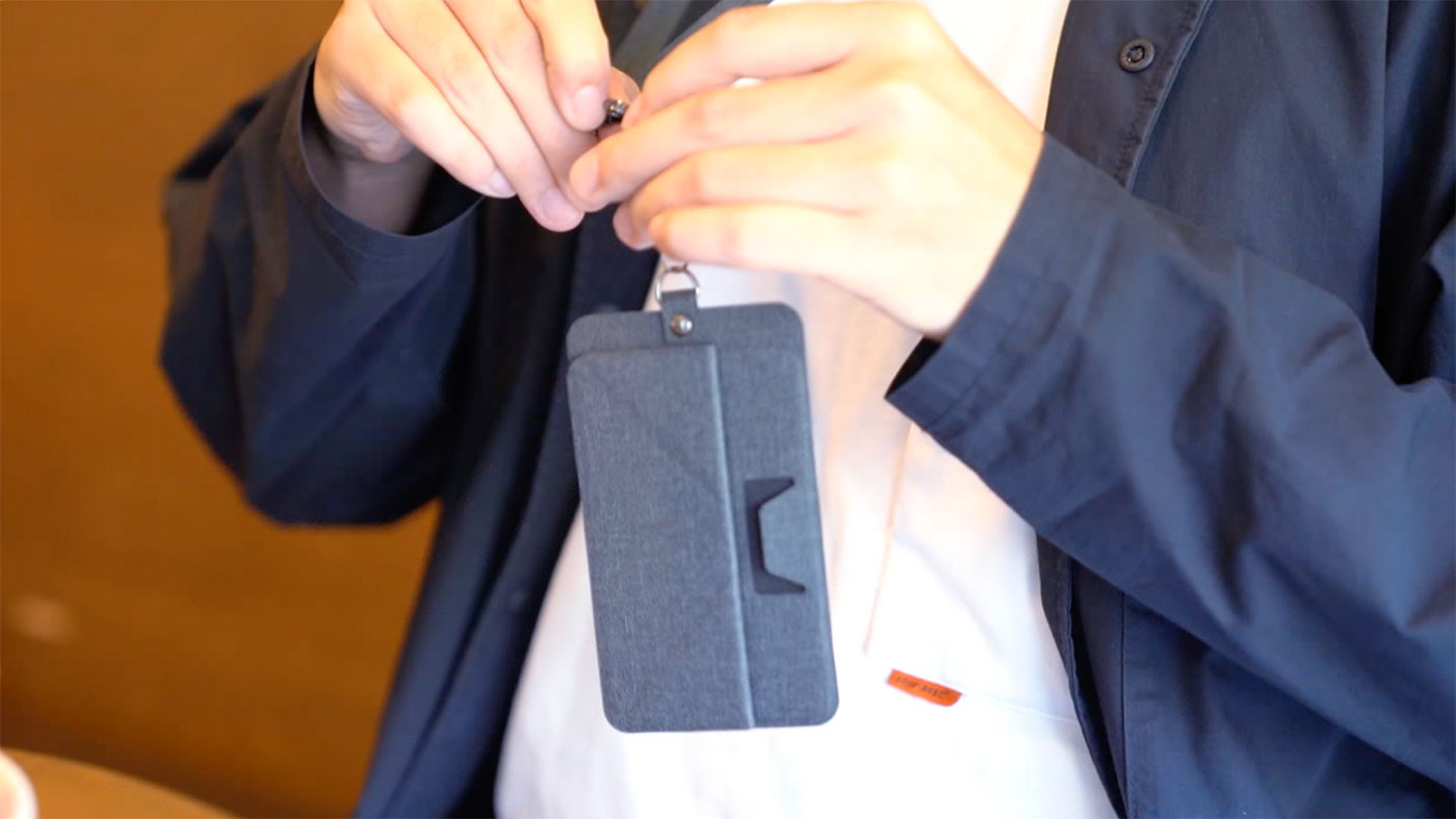 首にぶら下げるカードホルダーをスマホスタンドに変形させることで、かゆいところに手が届く便利グッズに仕上がっている。