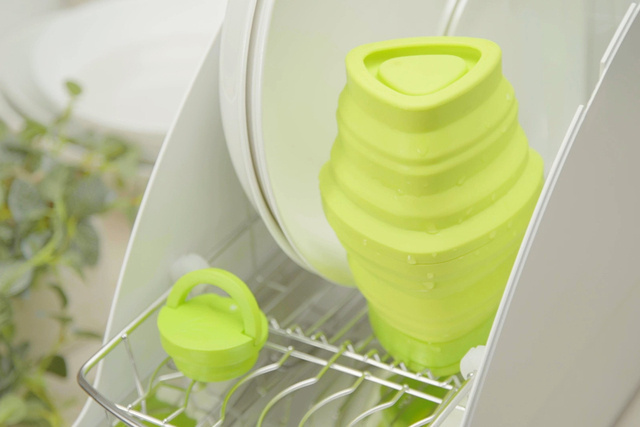 使用素材は、100%BPAフリーのフードグレードシリコン製で、人体にも地球環境にも優しいボトルになっている。220℃までの耐熱性能を誇る無味無臭な素材なので、熱い飲み物にも使えるうえに食洗機にも対応。