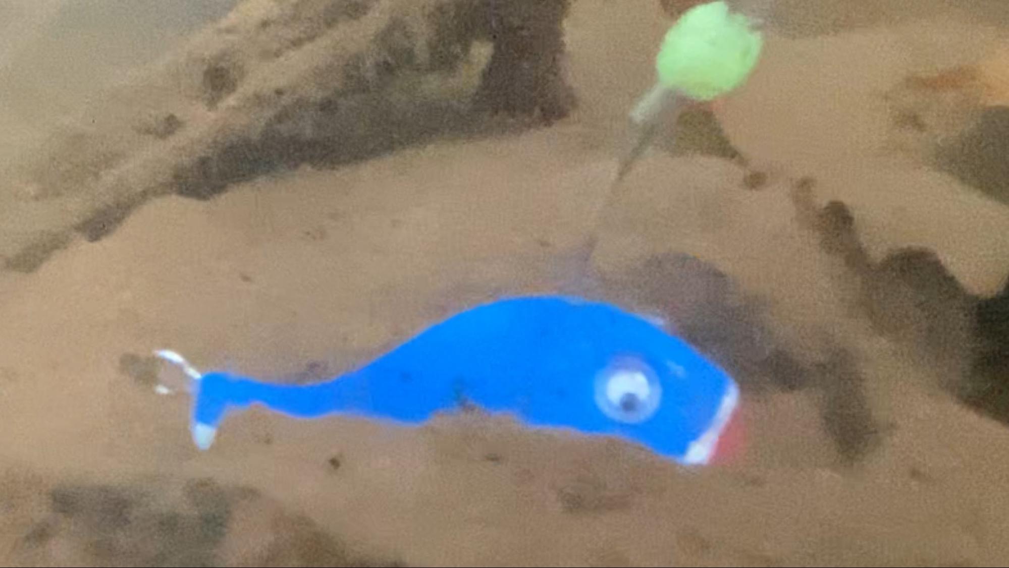 気になるところに投げ、池の底ではあんこうがこのような表情で魚を誘ってくれてます。
