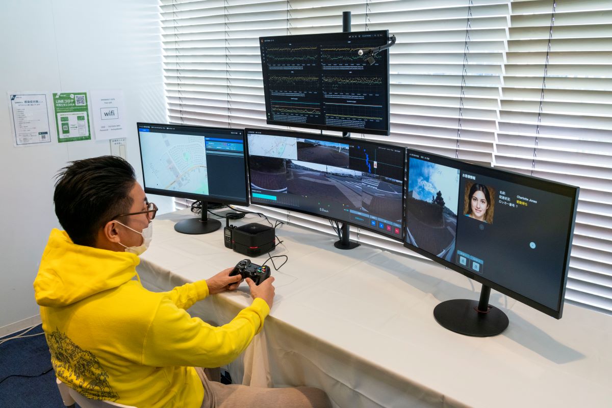 遠隔監視用のカメラを前後左右に配備し、ロボットの動きや周囲の状況はオペレーションセンターが把握。ロボットから送られてくる映像は、LTEの回線を通じてほぼリアルタイム配信され、遠隔からロボットを制御できる。自動走行できなくなった場合、遠隔操作に切り替えます。