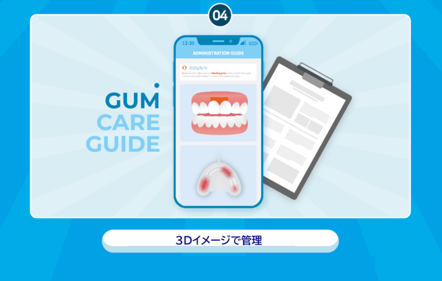 スマホと連携すると、口の中の健康状態を見える化することもできるようだ。歯磨きの後に、専用のカメラでマウスピースに残っている唾や歯磨き泡を撮影すると、アプリのAIにデータが蓄積。口の中に出血があれば、その写真からどこが傷ついているのかを3Dイメージで教えてくれる。