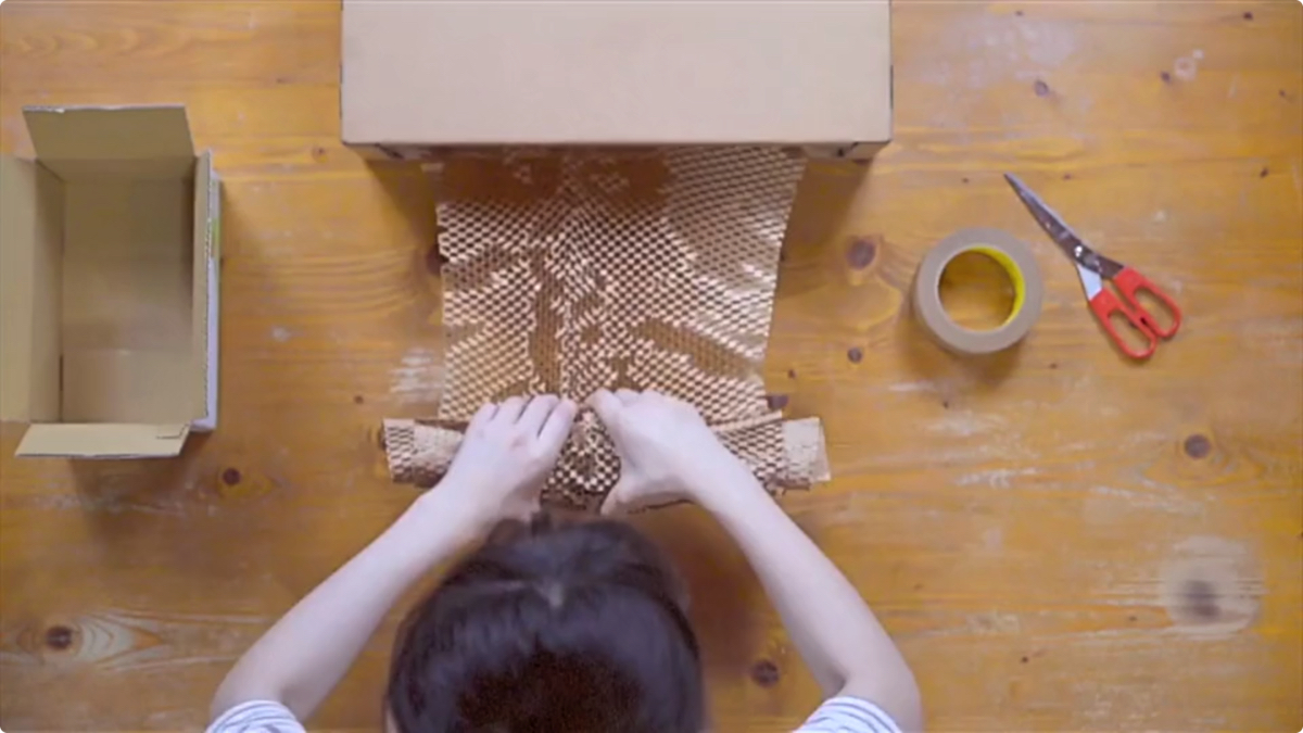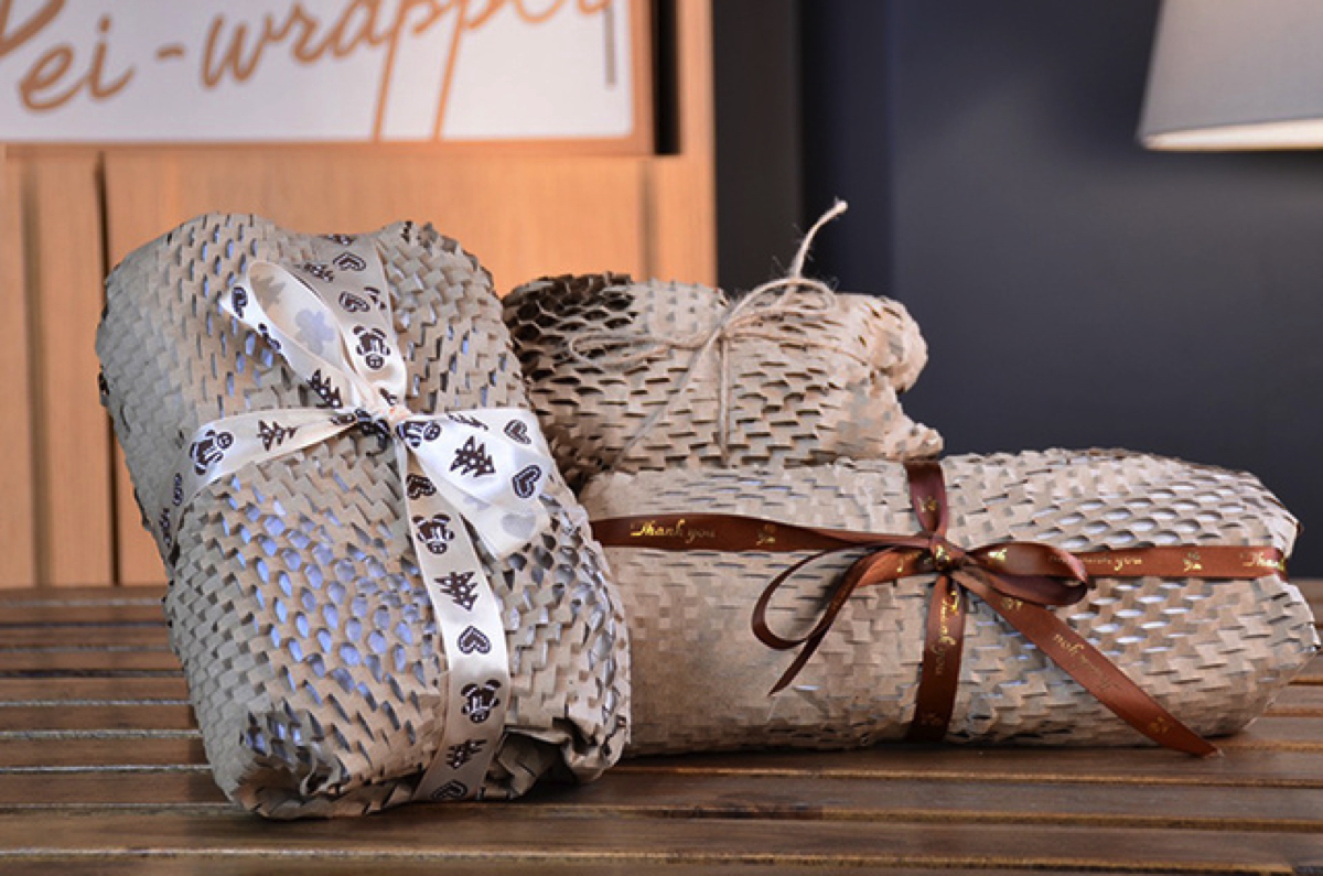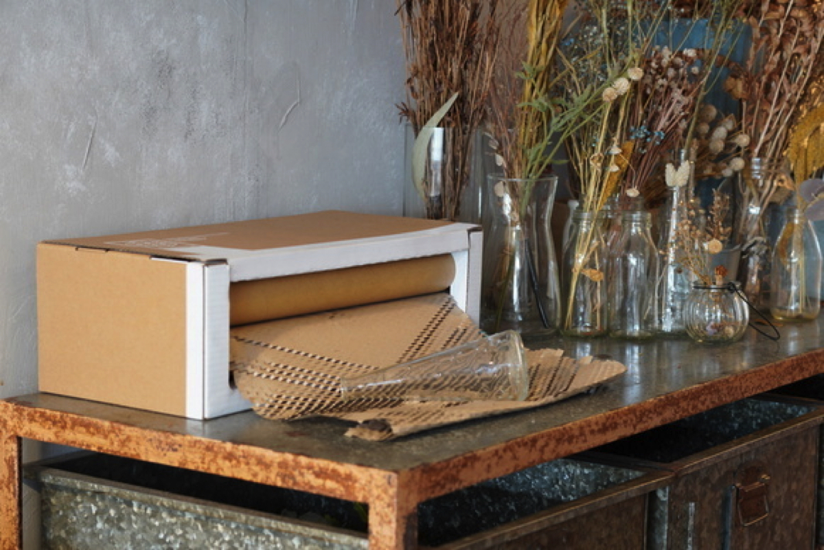 地球にやさしい紙ラップ「PEI-WRAPPER」は、梱包やラッピング材だけでなく緩衝材としても利用できるアイテム。ロール紙タイプで簡単に使えて、そこまでスペースを取らずにしまっておける。