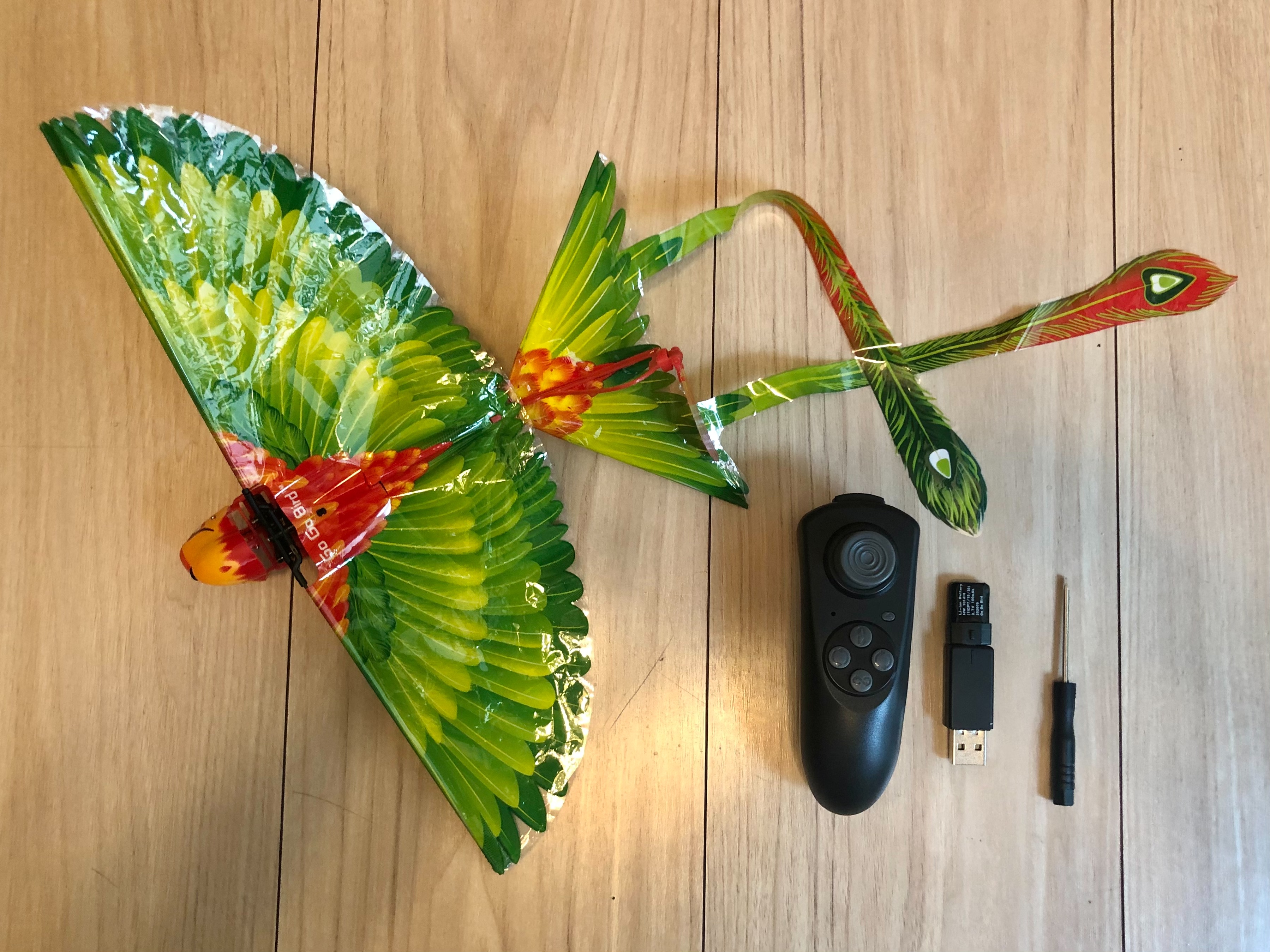 おうち時間も増えたので、今回は「Go Go Bird」という本物の鳥のように羽ばたくドローンをおうちで遊んでみました。