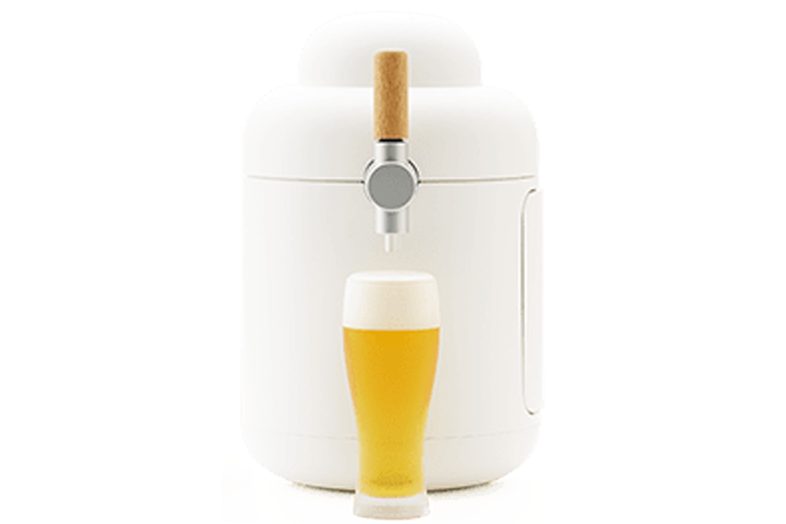 ホームタップの専用ビールサーバーは、レストランや居酒屋などで見るような無骨な見た目とは異なり、白を基調として丸みのある親しみやすい印象です。タップハンドルに使用された無垢材がポイントとなり、退屈な印象にまとまらず、おしゃれさと高級感を感じさせます。