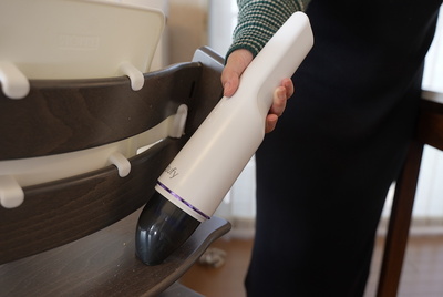 一方、バルミューダ ザ・クリーナーのポイントは、その独特な使い心地。フワっと浮くような感覚で掃除できるので楽しく掃除できるうえ、360度スワイプ構造のおかげで身長や姿勢を気にせず家族全員で使えるところも魅力です。