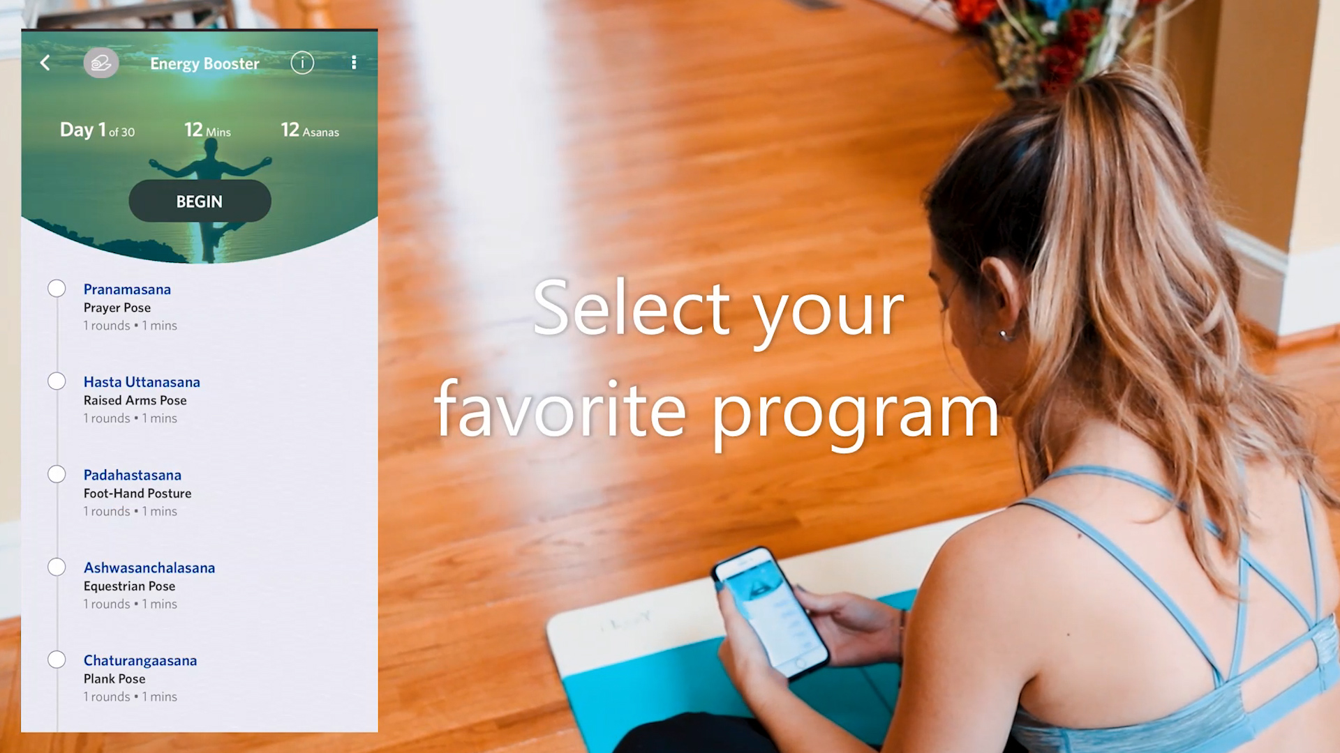 スマホアプリからお好みのトレーニングを設定して、ヨガの時間を楽しもう。トレーニングの内容から、人工知能があなたにピッタリのメニューを考えてくれる。アプリの進捗状況は、他の人とも共有できるので、ヨガ教室の先生にもあなたの家での活動を報告してくれる。
