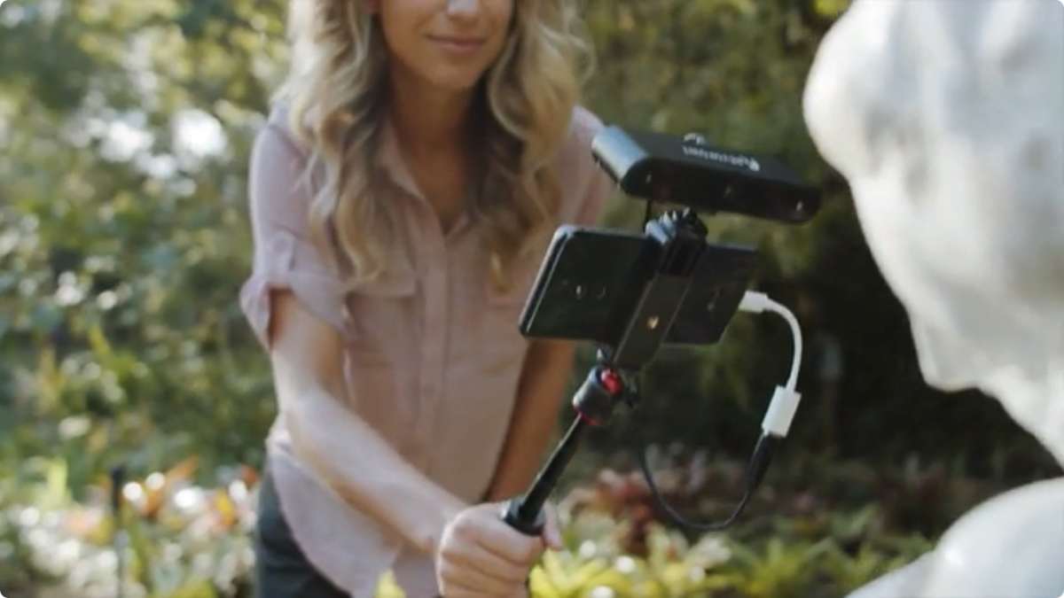また、バッテリーには接続デバイスから給電するので、外部電源は不要。スキャナーは、内蔵チップでスキャンデータを処理でき、外部デバイスのCPUやGPUなどを必要としない。重さは約200グラムとかなり軽い。スマホと一緒に街に持ち運んで、気になったものを3Dデータで残せそうだ。