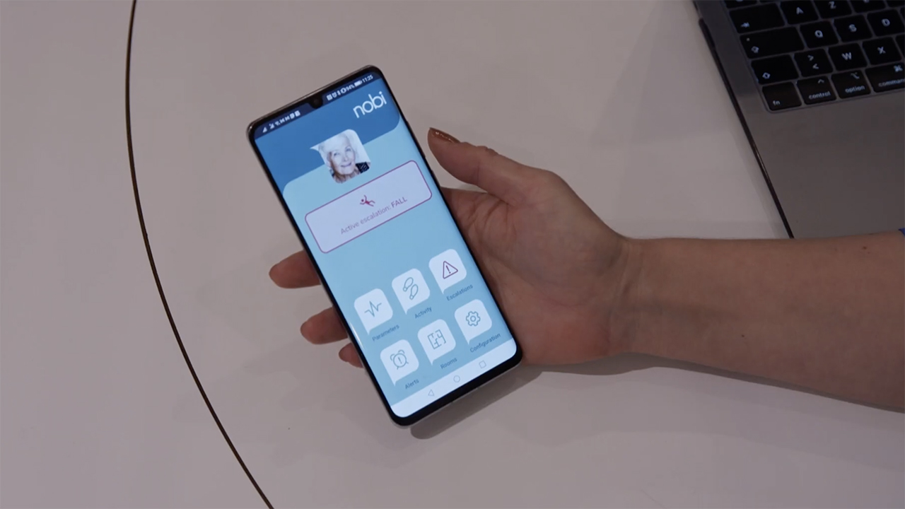スマホアプリでアラートを受けとった相手は、そのまま「Nobi」のスピーカーを通してユーザーと対話し状況を確認できる。また、プライバシーに配慮した抽象画像で状況確認も可能だ。
