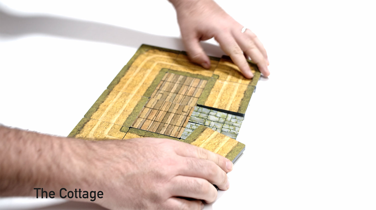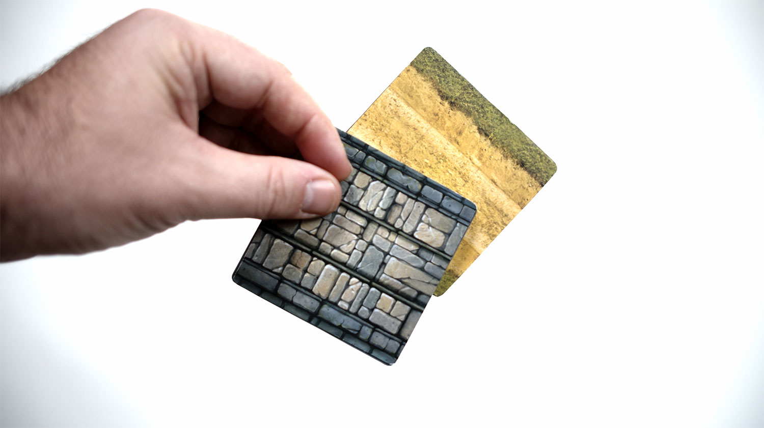 正方形、長方形、三角形ピースの各辺にマグネットが内蔵されており、簡単かつスピーディにくっつく。組み合わせ自由で、臨機応変にマップやダンジョンを作成できる。