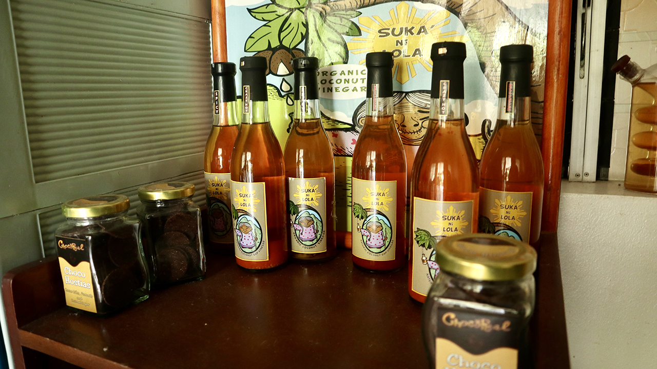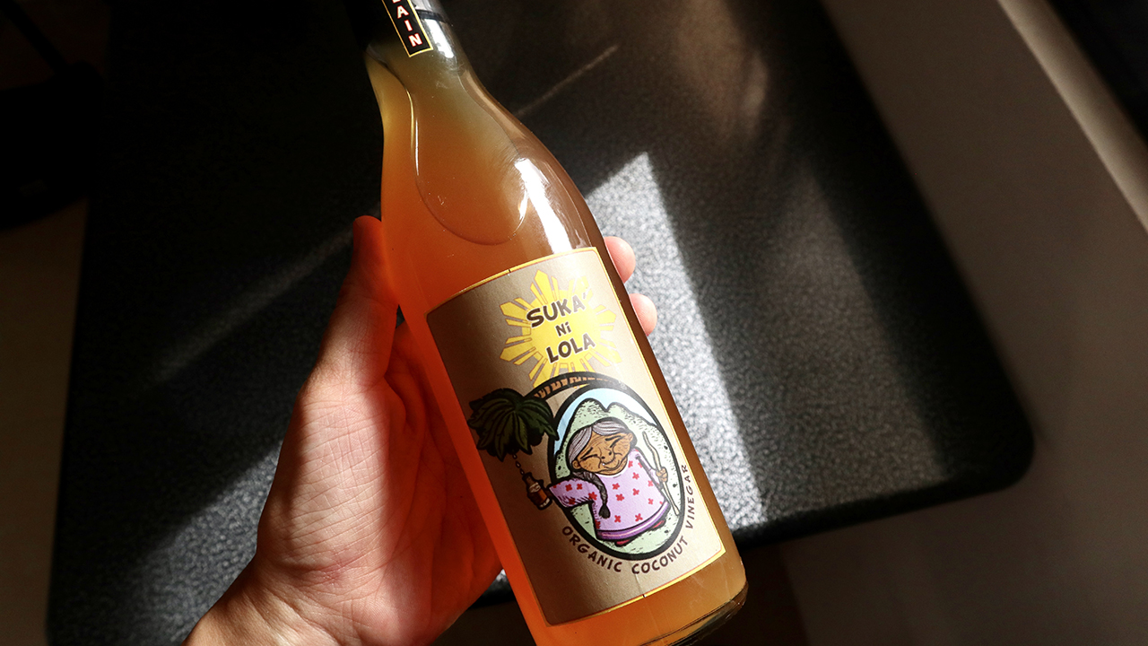 こちらはフィリピンの伝統食品の1つ、ココナッツビネガーです。ミネラルがとても豊富なココナッツの花の蜜からつくられています。