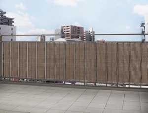 • ベランダに吊るすだけで目隠しや日除けになり、室内の温度上昇も抑える省エネタイプのすだれです。
