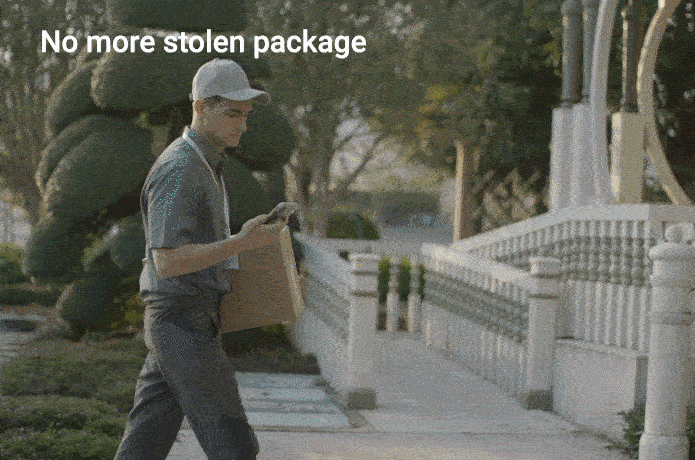 不審者の動きを検知すると自動でビデオ録画を開始。10〜30秒のクリップでユーザーのスマホに送信され、再生・共有・ダウンロードができる。