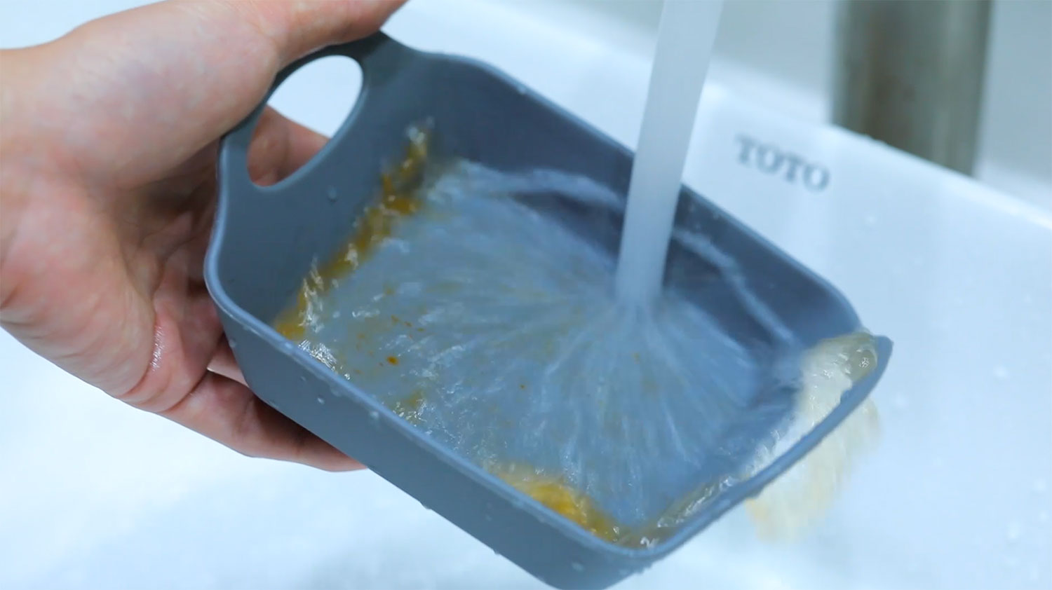 汚れが落ちやすいシリコン素材のおかげで、こびりついた焦げをゴシゴシ洗うストレスから解放される。さらに食洗機にも対応。とにかく後片付けがラクになる。