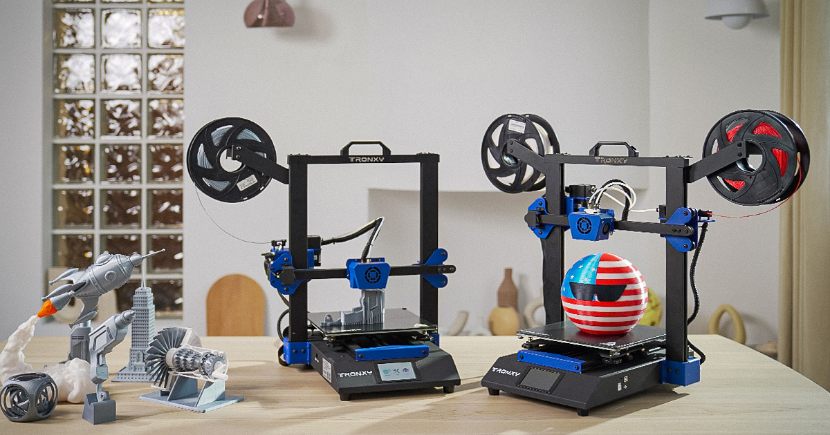 「Tronxy XY-3 SE」は一般的な単色の3Dプリントはもちろん、3Dプリンターの材料となるフィラメントを2色同時に使用するデュアルカラーの3Dプリントにも対応。フィラメントを混合するフルカラー印刷にこそ対応していないが、2色を組み合わせたカラフルな造形物を制作できれば表現の幅はぐっと広がりそうだ。