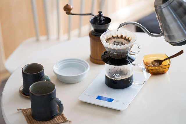 例えば、自宅でコーヒーを淹れる時は「dotscale」の上にドリッパーとサーバーをセットすれば、あとはスマホの手順にそってコーヒーを淹れるだけ。