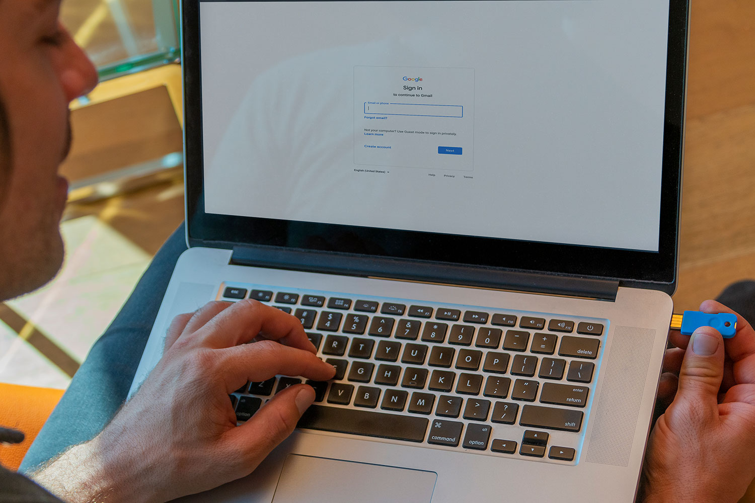 あとは二段階認証のセキュリティコード入力画面でPCに差し込み、「Solo V2」のタッチボタンに触れると二段階認証が完了する。二段階認証が手軽になり、そのうえログインに物理的な鍵を指定することでアカウント乗っ取りを防止する。