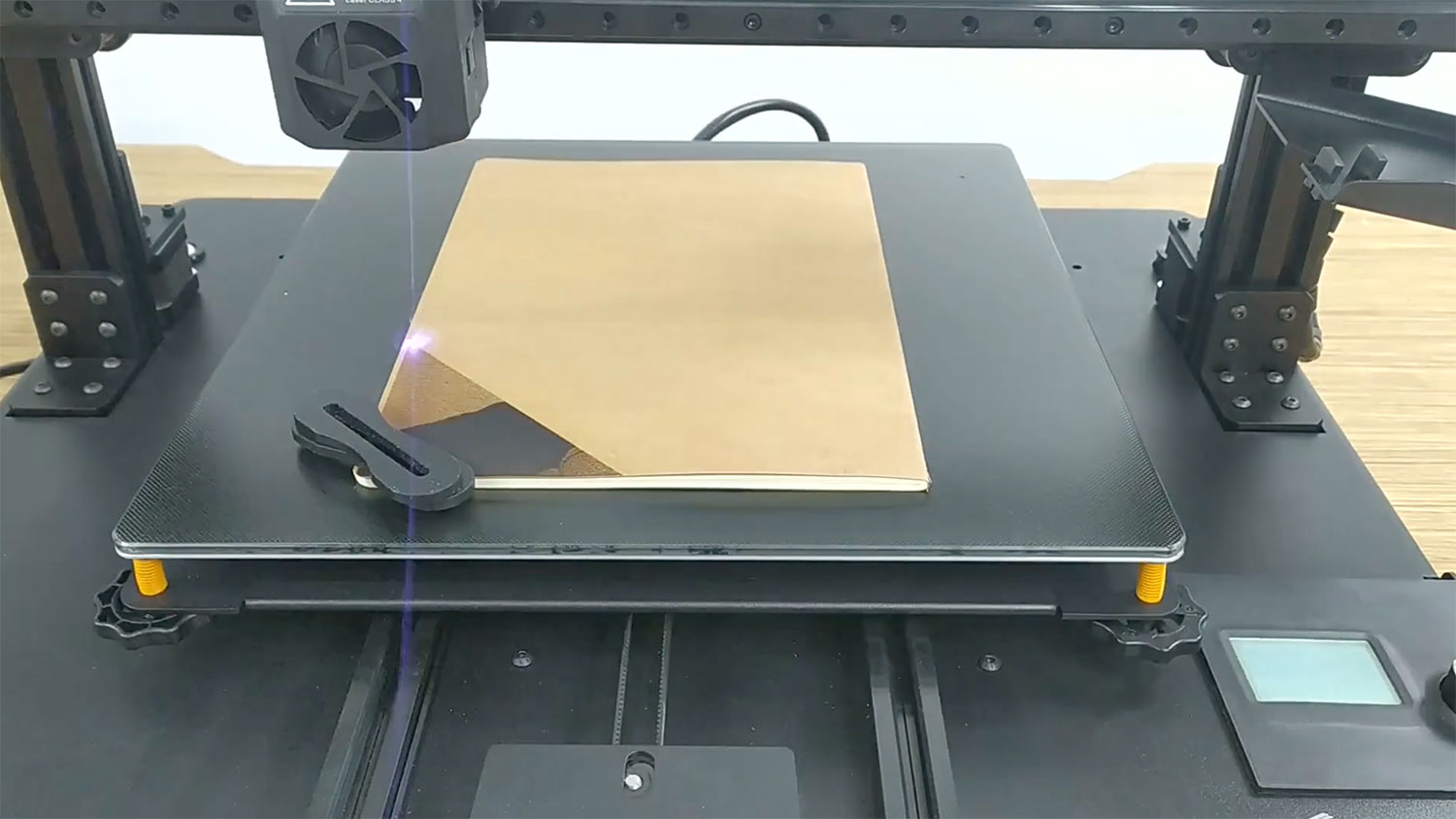 さらにレーザー刻印にも対応。木、プラスチック、皮革、段ボールなどの素材に、文字や写真を刻印できる。スマホケースや手帳などに好きな絵型を刻印すれば愛着が湧くかもしれない。
