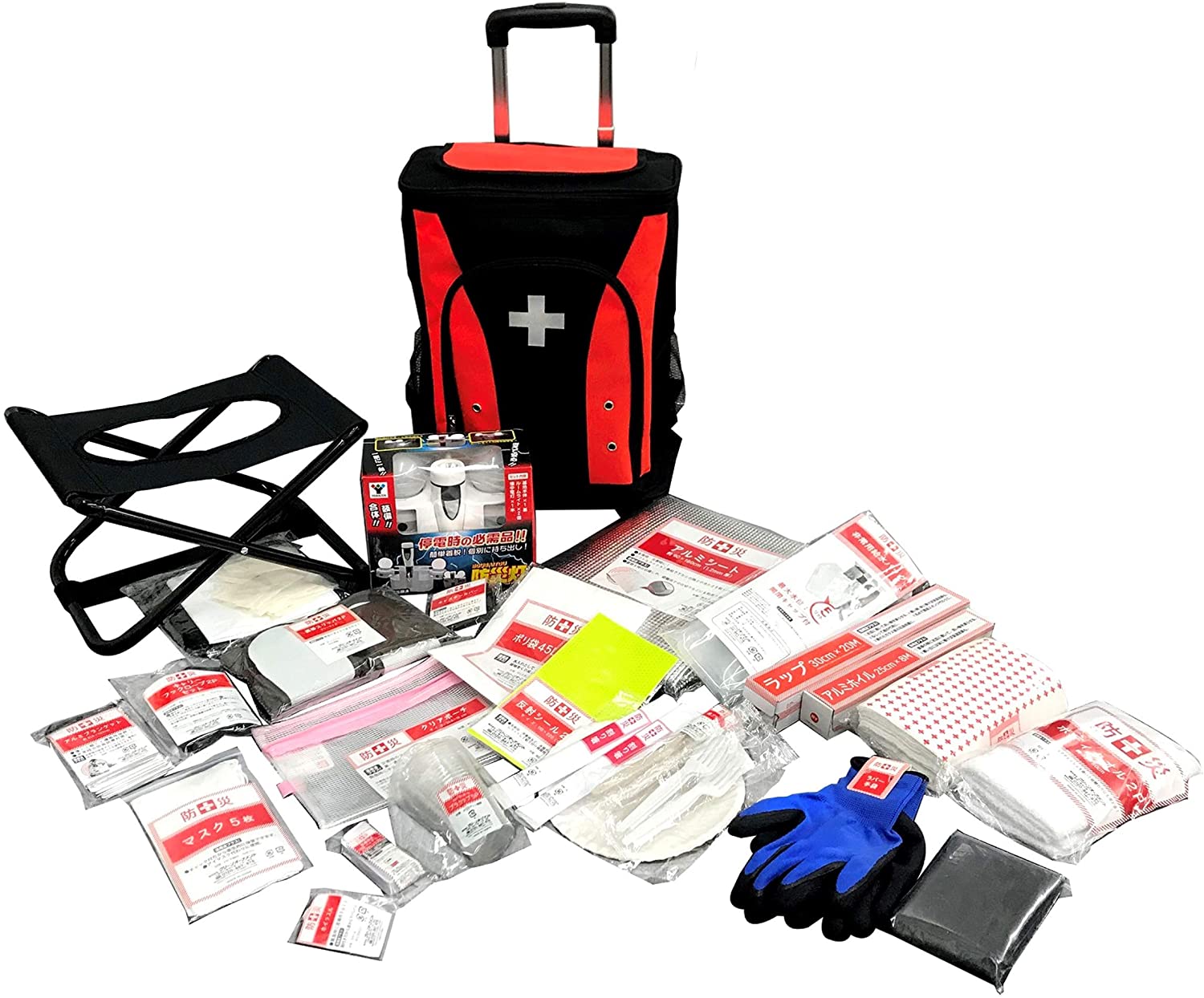 防災灯や乾電池式USBバッテリー、トイレセットなど防災時に必要なものが30点入っています。防災バッグは背負うことはもちろん、キャリーバッグにもなるため転がして持ち運ぶことも可能です。女性やお年寄りでも簡単に持ち運ぶことができますね。アマゾンレビューには、豪雨で避難した際に給水袋が入っていて便利だったという声が寄せられています。