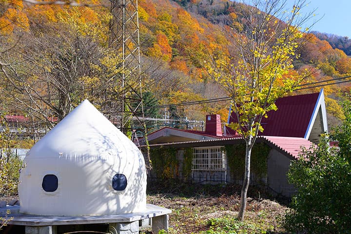 DOAI VILLAGEは、2020年の秋にオープンしたばかりの施設。「土合」という駅の内外を利用して作られた「無人駅グランピング」ができる、全国でも珍しいスポットです。繭のような形をした可愛いドームの中は、シャワーやトイレ、簡易キッチンなどを備えた過ごしやすい空間になっています。