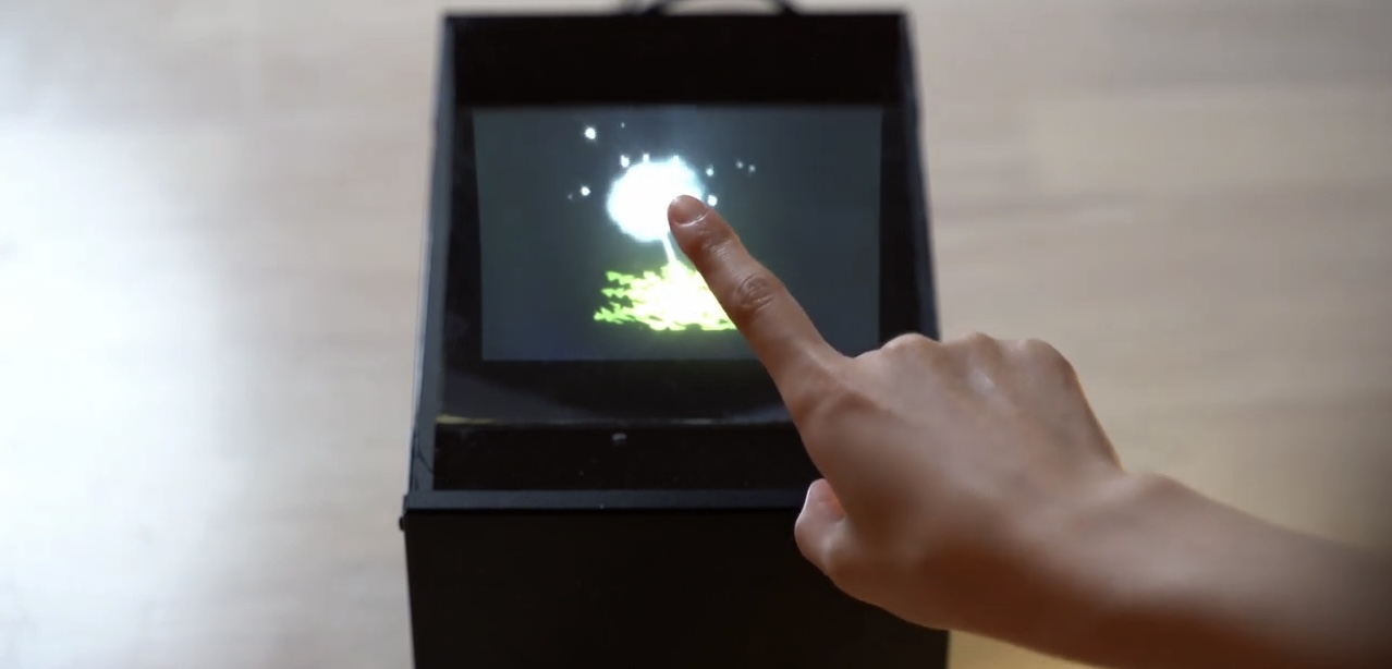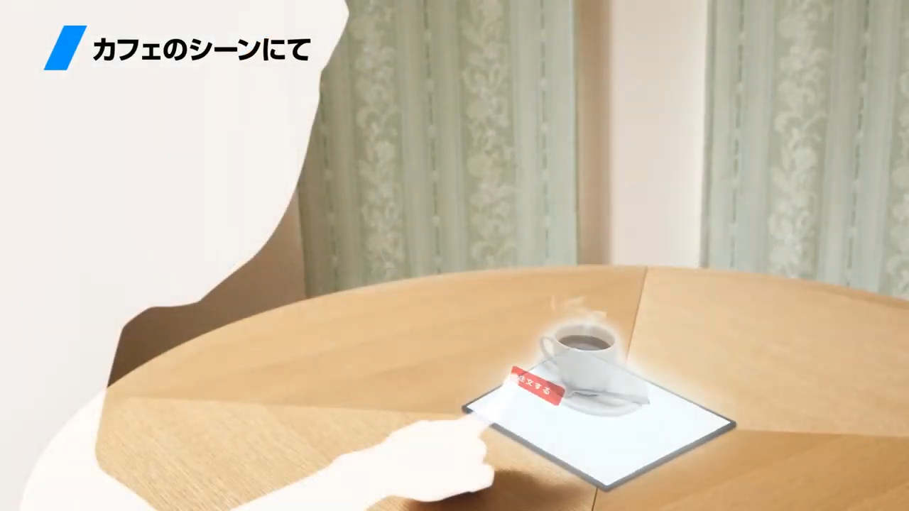 また、この映像は空中に映っているものを動かしたり、ボタンを押したりと、手で触って操作できる。画面に触れることがないため、感染症の予防にも一役買うのではないだろうか。
