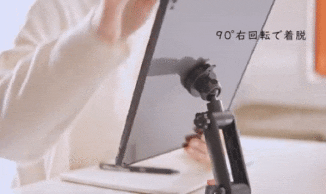 2つ目の特長は、特殊なボールジョイント構造。スイッチロックの状態で端末のアングルを360度調整できるため、シチュエーションに応じて最適な角度で画面を向けられる。